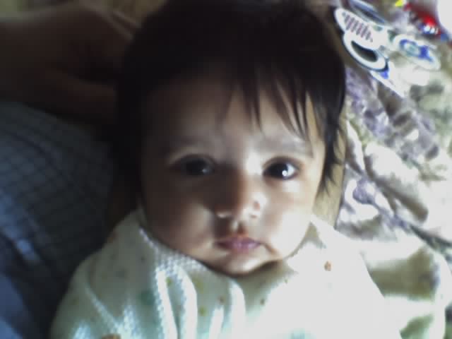 | 10/16/2005 Nambita, a.k.a "Nambu", "Khushi", and "Bill". She has just started solids and seems to prefer oatmeal. She likes playing with her "Molly Moo". |